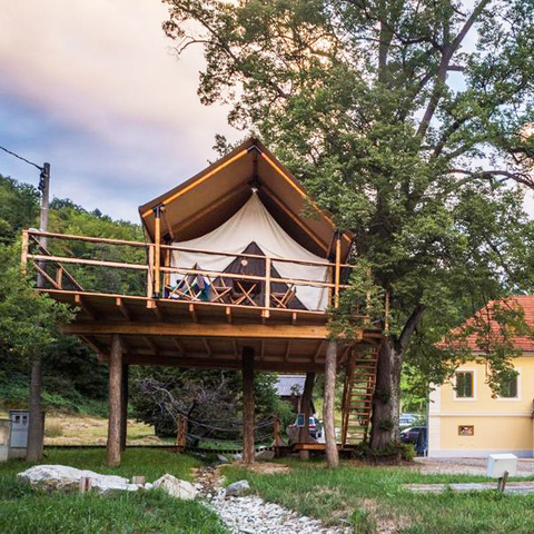Tienda Safari Glamping de lujo de 5x9m con estructura de madera maciza-Kit de Villa prefabricada a la venta