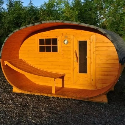 Sala de sauna de barril de madera maciza de cedro rojo eléctrico moderno más vendido en stock de nuevo almacén con medio círculo